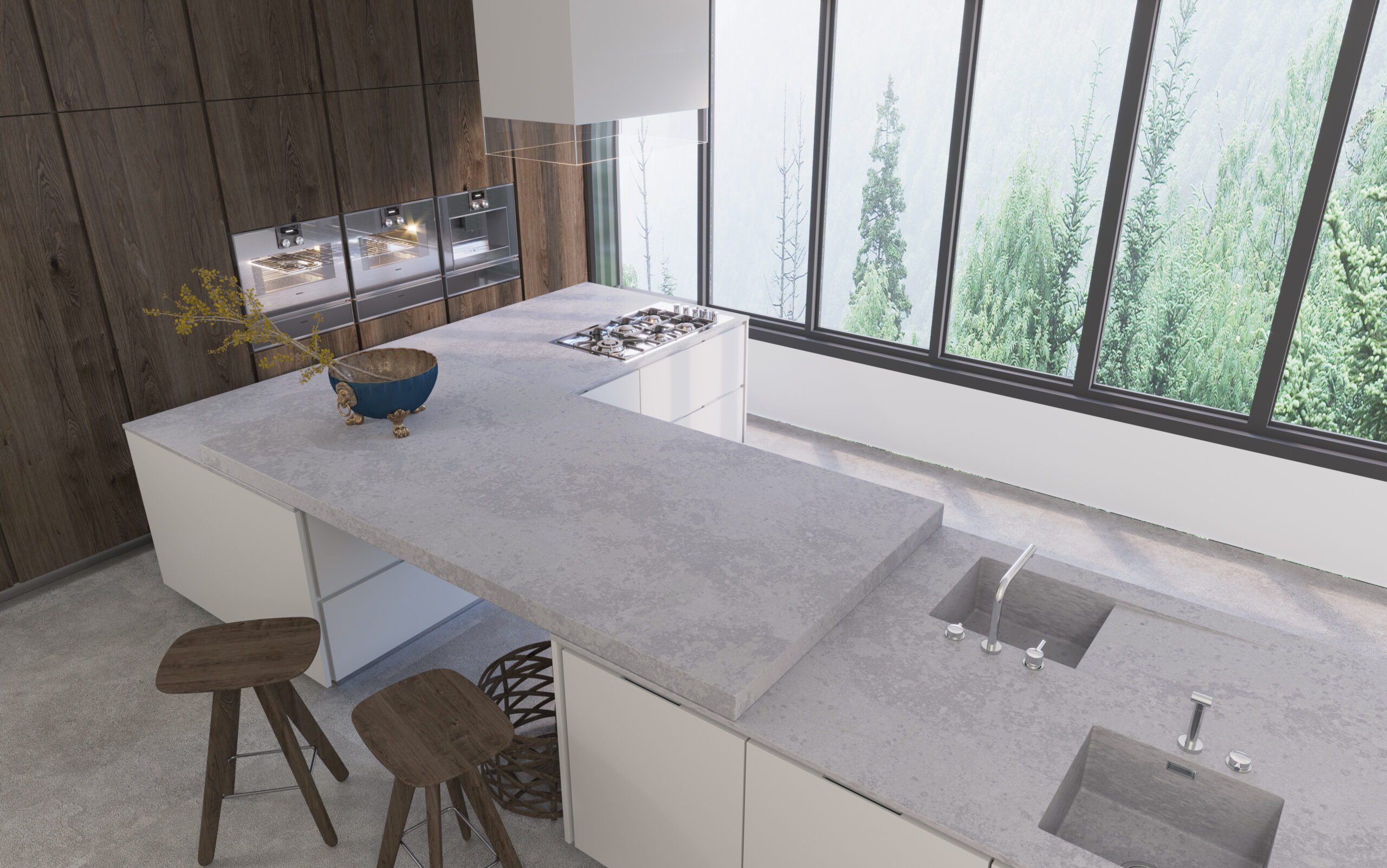 - Available in concrete, marble-effect, and metallic finishes