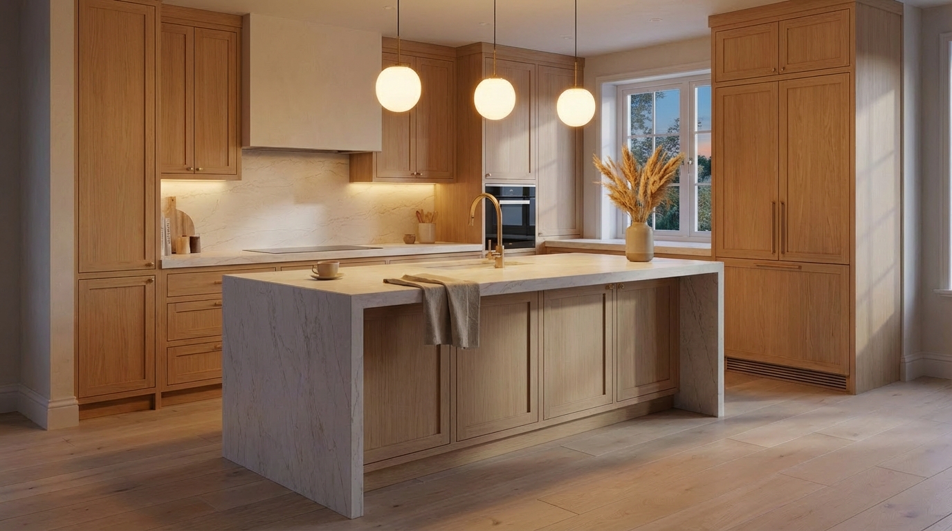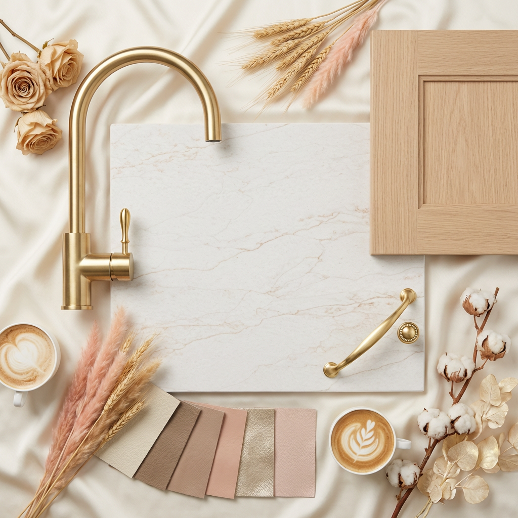 Evoking natural quartzite with creamy beige tones and fine layered movement. This quartz surface radiates warmth and sophistication, ideal for soft, neutral design schemes.